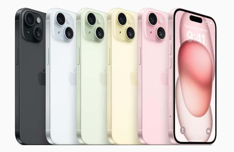Der US-Konzern bietet des iPhone 15 (Plus) in den fünf Farben Rosa, Gelb, Grün, Blau und Schwarz an. Preislich geht es beim iPhone 15 (128 GB) ab 949 Euro und beim iPhone 15 Plus (128 GB) ab 1.099 Euro lost. Optional stehen Speichergrößen mit 256 und 512 GB zur Wahl.