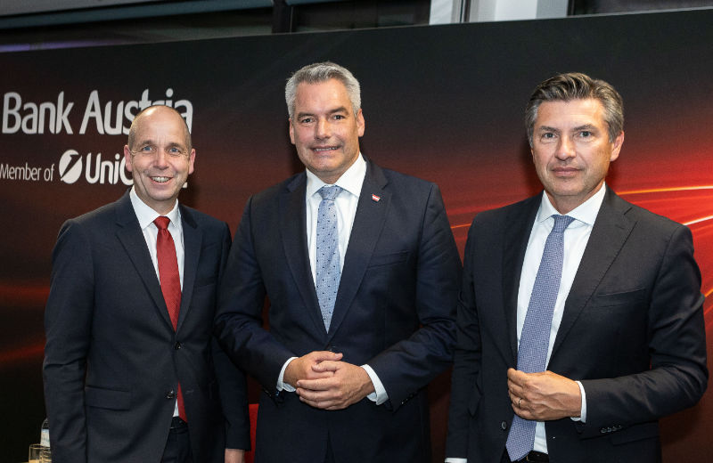 Beim jüngsten Bank Austria Forum im Headquarter der UniCredit Bank Austria in Wien wurde im Rahmen einer hochkarätig besetzten Podiumsdiskussion das Thema "Quo vadis, Österreich 2030?" behandelt. Konkret diskutierten Bundeskanzler Karl Nehammer, Holger Bonin, Leiter des Instituts für Höhere Studien (IHS) und Robert Zadrazil, CEO der UniCredit Bank Austria. Im Zentrum standen dabei die drei großen "D"-Fragen: demographischer Wandel, Digitalisierung und Dekarbonsierung.