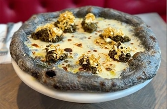 Für den u.a. mit Kaviar und Blattgold belegten Teigfladen namens "Mamma Rich" müssen die Gäste tief in die Tasche greifen. Im Preis ist aber auch eine Flasche Schampus inkludiert.