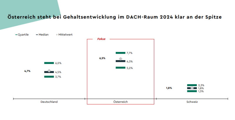 Österreich steht bei Gehaltsentwicklung im DACH-Raum 2024 klar an der Spitze. © Kienbaum Wien