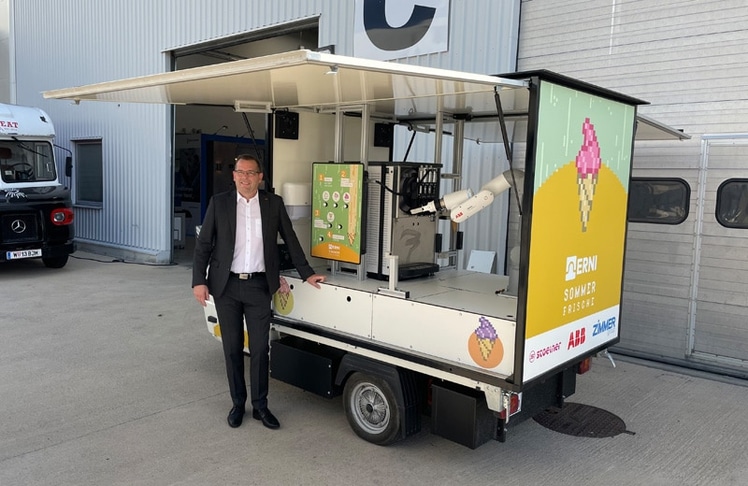 Mit ERNI Sommerfrische startete im April das erste Projekt für die Markterprobung und um die Firma und die Idee, nun ja, in "aller Munde" zu bekommen. Was für Endkunden auf Knopfdruck recht einfach erscheint, bietet bei genauem Betrachten einen rollenden Showcase für viele Themen, die aktuell heiß thematisiert werden. Das Herz bilden natürlich die Softeismaschine und der kollaborative Roboter, der einen sicheren Betrieb ohne Schutzzaun ermöglicht und damit die Technik noch greifbarer macht. Die Basis dafür bildet eine Piaggio Ape, die im Retrofit vom stinkenden Zweitakt-Benziner zum zukunftsorientierten Retrogefährt mit Elektroantrieb upgecycelt wurde. Die nahezu autarke Energieversorgung wird durch Leichtbau-Photovolatikmodule und einem großzügigen Speicher erreicht. Versorgt werden damit sowohl der Roboter und die Eismaschine, aber auch der Antrieb für ERNI Sommerfrische. In Summe wird also Sonnenenergie direkt in Eis und Antrieb umgewandelt, was das Eis noch etwas besser schmecken lässt.