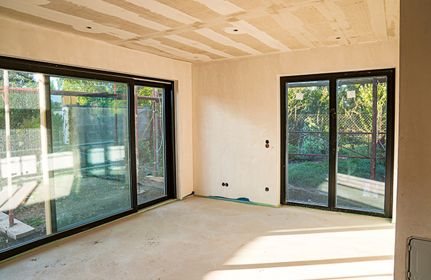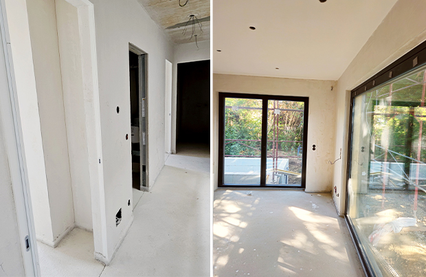 Aktuell erfolgt der Innenausbau, die Fliesen, sowie der Fischgrätparkett werden in wenigen Tagen verlegt. Das Gerüst steht bereits und die Fassadenarbeiten starten in zwei Wochen. Noch wenige Wochen bietet sich die Möglichkeit, Änderungen hinsichtlich Oberflächen, Elektro- und Sanitärausstattung ohne großen Aufwand umzusetzen.