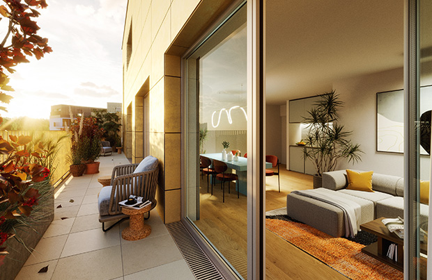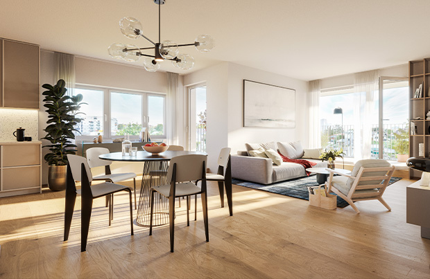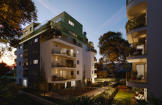 Neue Qualität auf lange Sicht, so lautet das Credo von Mira Laa – konzipiert mit viel Fingerspitzengefühl und Fokus auf Details werden die Anforderungen des modernen, urbanen Wohnens inmitten des neuen Stadtviertels Viola Park erfüllt.