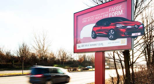 Renault lässt den neuen Clio in den Straßen von Wien auffahren. Die Modelle sind aber nicht nur am Asphalt unterwegs, sondern zeigen sich auch auf zahlreichen Rolling Boards. Eine Spezialumsetzung mit Formatsprengung und Leuchteffekt soll Begeisterung und technische Raffinesse ausstrahlen. "Leidenschaft ist die große Klammer über der Renault-Firmenphilosophie. Sie steckt in unseren Designs und Farben, in der Technik und dem Umweltgedanken. Alle positiven Eigenschaften des neuen Clio übersichtlich und aufmerksamkeitsstark auf ein Sujet zu bringen, war eine große Herausforderung. Die Möglichkeiten des Rolling Boards haben uns die Aufgabe erleichtert", erklärt Natascha Tomaschewsky-Swoboda, Werbeleitung von Renault Österreich. "Bei der Rolling Board-Umsetzung von Renault kann man davon ausgehen, dass viele Menschen auf der Straße für die neuen Clio-Modelle entbrennen werden. Signalfarbe und Formatsprengung. Diese Kombi besitzt bereits Eyecatcher-Qualität. Die Elonfolie sorgt zusätzlich dafür, dass der Effekt im Dunkeln nicht verblasst", so Andrea Groh, Director of Sales Gewista. (red)
