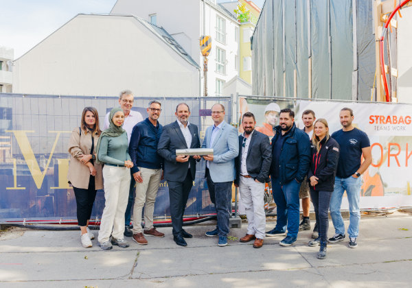 Vor Kurzem hat VMF Immobilien den Grundstein für ein nachhaltiges Wohnprojekt im 17. Wiener Gemeindebezirk gelegt. Bei der Grundsteinlegung waren u.a. Monika Jaroszkiewicz und Peter Frank vom Architekturbüro Hermann & Valentiny und Partner, Mariam Gwely und Joachim Walch von der BauSoll GmbH, Gruppenleiter Markus Mauer und Bauleiter Anto Lamesic von der Strabag GmbH sowie Projektleiter Dimitrios Akranidis und Abteilungsleiter Projektmanagement Oliver Högn, beide VMF Immobilien GmbH.