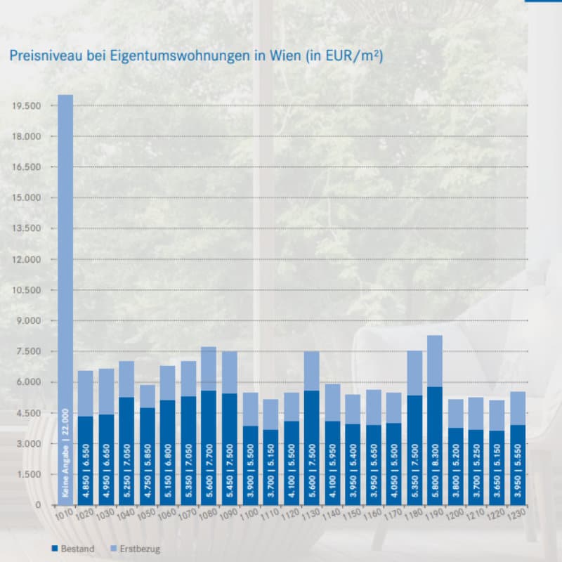 Je nach Bezirk gibt es große Preisunterschiede. Während man im ersten Bezirk bei Ersteinzug 22.000 Euro pro Quadratmeter bezahlen muss, sind es im elften Bezirk "nur" 5.150 Euro.