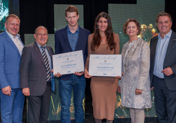 Unter den 253 überreichten Urkunden in 29 verschiedenen Berufsgruppen waren u.a. Zahntechniker:innen, Buchbinder:innen oder Mechatroniker:innen. Mit insgesamt 37 Titeln bildeten die Kraftfahrzeugtechniker:innen - wie auch schon im Vorjahr - die stärkste Gruppe in diesem Jahr. Eine Besonderheit waren Julia und Dominik Haiderer, die sich als Ehepaar gemeinsam die KFZ-Meisterschmuckurkunde abholten. Nicole Starek landete etwa nach ihrem erfolgreichen Abschluss ihrer Studien (Bachelor of Science Informatik, Master of Science Technisches Management und Master of Business Administration) im Handwerk und ist nun auch Konditormeisterin.