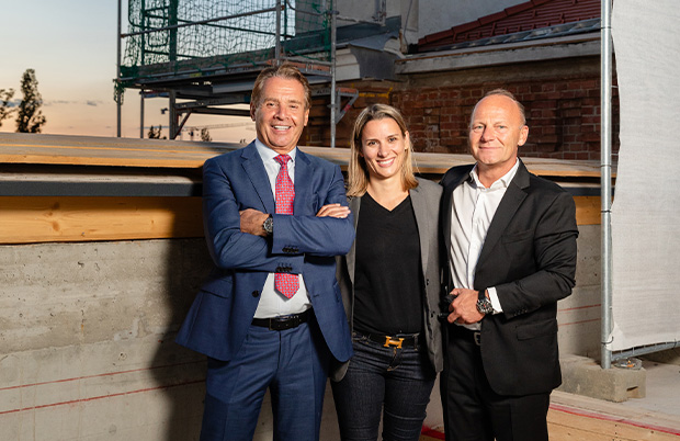 Neben der Fertigstellung der Musterwohnung wurde auch die Dachgleiche von DAS ARTMANN begangen. Aufgrund des umfangreichen Bestands, der in Detailarbeit saniert wird, zeigt sich diese vor allem am Ausbau des Dachgeschosses, das künftig vier Penthäuser beheimaten wird.