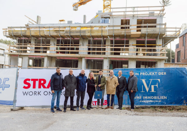 Am Südhang des Kahlenbergs an der Adresse Unterer Schreiberweg 47 im 19. Wiener Gemeindebezirk wird das Projekt Greffier 47 realisiert. Vor wenigen Tagen durften VMF Immobilien und Strabag u.a. Bereichsleiter Markus Gornik, Bauleiterin Vanessa Dominguez, Polier Richard Frank, alle Strabag, Architekt Klaus Duda von KDA ZT GmbH, Joachim Walch von BauSoll Baumanagement GmbH, Michaela Orisich und Eva Gugerell, beide vom Maklerunternehmen Austria Sotheby's International Realty, sowie Mitglied der Geschäftsführung Horst Lukaseder, Leiter Projektmanagement Oliver Hoegn, Projektleiter Stephan Lang und Julian Köberl, alle VMF Immobilien GmbH, bei der Gleichenfeier begrüßen.