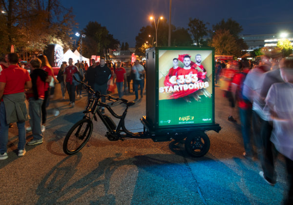Das Bike fuhr auf einer festgesetzten Route über den Ring bis zur Prater Hauptallee, vor Ort rund ums Stadion und wurde schlussendlich in der Fanzone geparkt. "Die LED E-Bike Promotion war für tipp3 eine willkommene Gelegenheit rund um das Heimspiel des Österreichischen Nationalteams etwas Neues auszuprobieren. Mit dem höchsten Startbonus des Landes konnten wir den vielen Stadionbesuchern einen echten Heimvorteil bieten und dies damit perfekt kommunizieren", so Bernadette Schwentner, Head of Marketing & Retail bei tipp3 Österreichische Sportwetten GmbH.