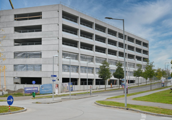 "Die Hochgarage ergänzt das 'Quartier Mitte' optimal und wird durch ein digitales Bewirtschaftungs-Konzept sowohl Bewohner:innen, Beschäftigten im Umfeld des Quartiers, Anrainer:innen, Hotelgästen als auch Pendler:innen Stellplätze auf zwölf Ebenen bieten. Ferner wird durch die geplante Photovoltaik-Energiegewinnungs-Anlage am Dach mit deren Stromeintrag auch E-Mobilität gefördert: zusätzlich zum klassischen Parken kann man sein Elektro-Fahrzeug mit Strom betanken, als Anreiz für alternative Mobilitätsangebote entstehen außerdem zahlreiche Fahrrad-Abstellplätze in Fahrradgaragen", sagt Neubauer.