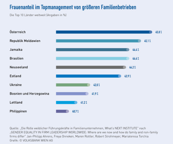 Frauenanteil im Topmanagement von größeren Familienbetrieben. © Volksbank Wien AG
