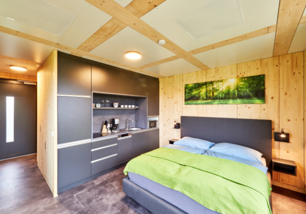 Das "ZiKK 2.0 – Apartment" ist ein 50 Quadratmeter großes Doppelhaus, mit jeweils einem Bad/WC, Zimmer mit Küche und Terrasse und kostet 300.000 Euro.