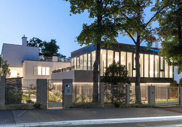 Das sensible Projekt umfasst in Abstimmung mit dem Bundesdenkmalamt einerseits Adaptierungen, um ein zeitgemäßes Wohnen zu ermöglichen, und andererseits den technischen Ausbau des historischen Bestandes. Außerdem wurde im Bereich des Vorgartens ein gläserner Solitär errichtet.
