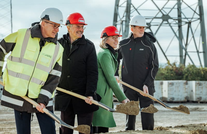 Klimaschutzministerin Leonore Gewessler sowie Niederösterreichs Landtagspräsident Karl Wilfing nahmen neben den Hausherren Gerhard Christiner, technischer Vorstand APG und EVN Vorstandsdirektor Franz Mittermayer am symbolischen Spatenstich teil.