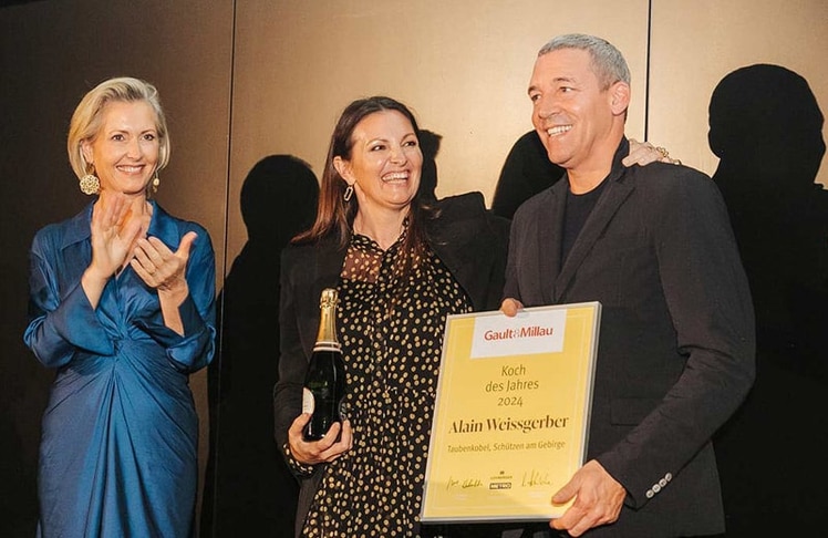 Der nicht minder begehrte Titel "Koch des Jahres" geht heuer an Alain Weissgerber vom Restaurant Taubenkobel im Burgenland. Bei seinen Gerichten schimmern die französischen Wurzeln des Elsässers stets durch und nehmen mitunter auch eine tragende Rolle ein. Zudem wurde heuer erstmals die "Grüne Gault&Millau Haube" für gelebte Nachhaltigkeit vergeben - und zwar an an Jeremias Riezler von der "Walserstuba" in Vorarlberg. "Nachhaltigkeit ist mehr als das, was auf der Speisekarte steht", sind sich die Hohenlohes einig und vergeben daher mit der Ausgabe 2024 erstmals die "Grüne Haube".