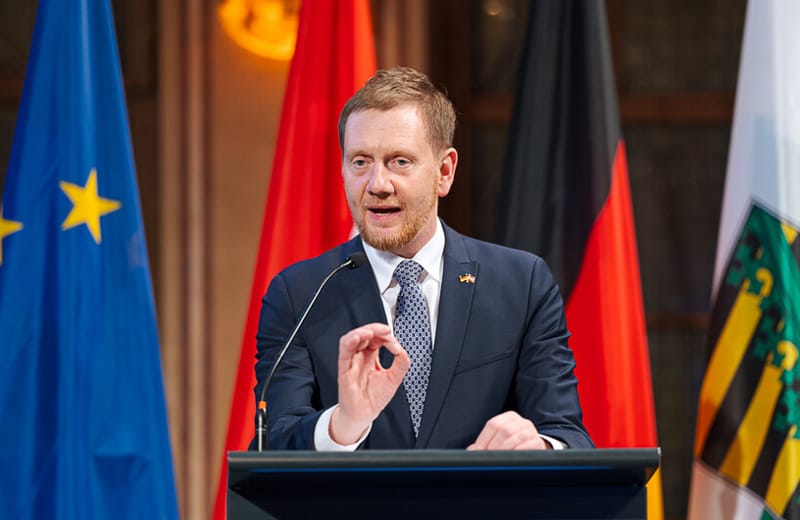 Der Ministerpräsident kritisierte die Verschuldungspolitik der Ampelregierung in Berlin, sprach sich aber für ein "Sondervermögen" zum Ausbau der Bahn aus. Kritische Worte fand Kretschmer auch für die EU.