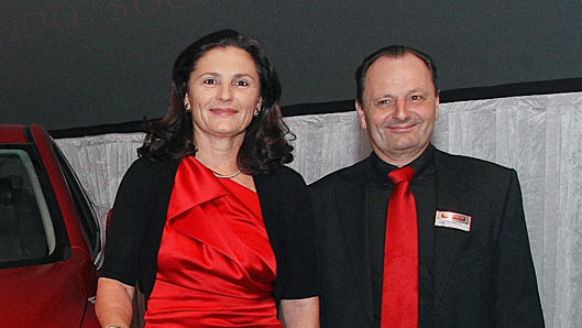 "Dieses Auto ist dynamisch, sportlich, elegant und technisch unschlagbar. Es ist meine neue große Autoliebe und wird auch unsere Kunden begeistern", freute sich Gabriela Lemberger, Vorstand Rainer AG. Mit lautem Trommelwirbel der Drum Show der extra aus Düsseldorf eingeflogenen deutsch-japanischen Gruppe "Wadokyo" enthüllten dann die beiden Rainer-Eigentümer unter lautem Applaus den anwesenden Gäste den Mazda6.