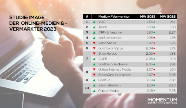 Studie: Image der Online-Medien & Vermarkter 2023 © Momentum