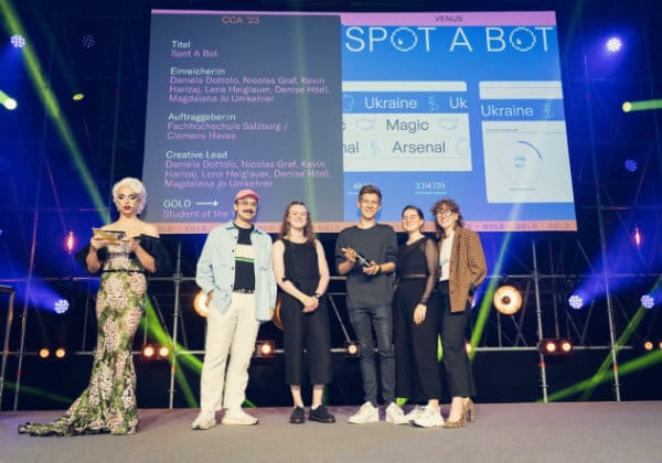 Das Nachwuchsteam bestehend aus Daniela Dottolo, Nicolas Graf, Kevin Harizaj, Lena Heiglauer, Denise Hödl und Magdalena Jo Umkehrer holt Gold mit ihrer Arbeit "Spot a Bot" in der Kategorie "European Student of the Year" für die FH Salzburg.