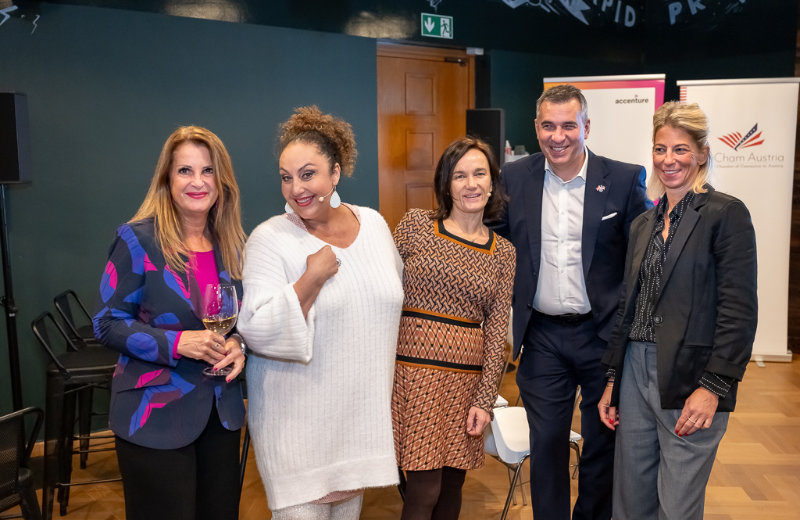 Nach der Begrüßung durch AmCham- President und Gastgeber Michael Zettel und einer sehr persönlichen Diskussion mit Sandra Golser, Managing Director Accenture Song, hielt Tatjana Lackner, die Keynote mit dem Titel "Personal Branding und Business Rhetorik".