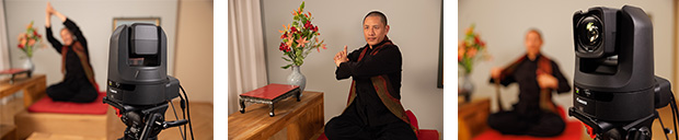 Das Studio-Setup umfasst zwei Canon CR-N300 PTZ Kameras – quasi eine Plug-and-Play-Lösung mit intuitiver Steuerung, Autofokus und 20-fachem Zoom, die supereinfach zu bedienen ist, gestochen scharfe 4K-UHD-Bilder liefert und eine sichere Liveübertragung gewährleistet. So bleibt die Spiritualität der Kurse bzw. der Fokus des Lehrenden auch im Rahmen des Livestreams erhalten.