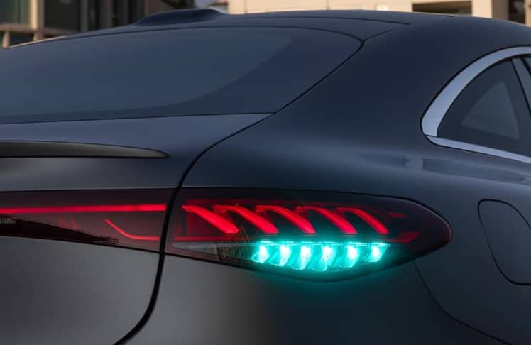 Mercedes zufolge ist die Wahl ganz bewusst auf die Farbe Türkis gefallen, da diese zwei der wesentlichsten Kriterien erfülle. Zum einen gestatte die Sichtbarkeit eine zuverlässige und schnelle Erkennung für andere Verkehrsteilnehmer:innen, zum anderen sei Türkis deutlich unterscheidbar von bereits bestehenden Fahrzeugbeleuchtungen und Verkehrssignalen wie Ampeln oder Notbeleuchtungen. Dadurch könne eine Verwechslungsgefahr stark reduziert werden, so die Entwickler:innen. Darüber hinaus sei die Farbe in Probandenstudien am besten angekommen.