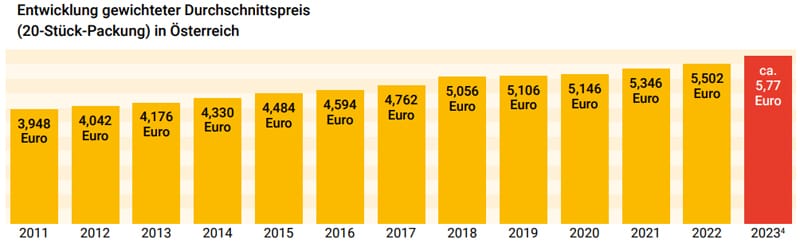 Der Jahresumsatz der Trafikant:innen aus Tabakwaren belief sich auf 3,8 Milliarden Euro, wobei die Durchschnittserlöse der Tabakfachgeschäfte merklich gestiegen sind. Die Handelsspannen stiegen demnach um 8,2 Prozent auf 191.000 Euro.