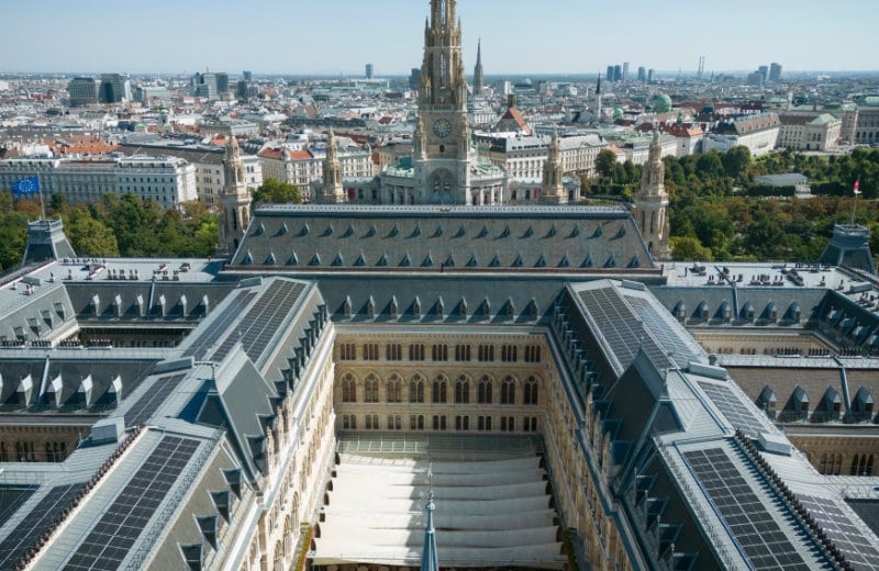 Ein einzigartiges Projekt ging laut einer Aussendung letztes Jahr etwa im Zuge der Wiener Sonnenstromoffensive der Stadt Wien in die Umsetzung: Das Wiener Rathaus erhielt eine Photovoltaikanlage. Das Besondere daran: Die Module wurden entlang der Dachschrägen Richtung Innenhof platziert, wodurch die Erfordernisse des Denkmalschutzes und der lokalen Grünstromerzeugung vereint werden konnten. In Zusammenarbeit mit der Stadt Wien hat Wien Energie zudem noch zahlreiche weitere Gebäude mit Photovoltaik-Anlagen ausgestattet. Dazu gehören unter anderem das Wien Museum, Gemeindebauten von Wiener Wohnen und das Shopping-Center-Nord mit der größten Photovoltaikanlage auf den Dächern Wiens.