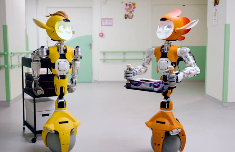 Im Testbetrieb in einer Pariser Klinik unterstützen sie bereits Pflegepersonal bei der Essensausgabe oder bei kleineren Transportaufgaben. Ein drei Kilogramm schweres Tablett können die etwa ein Meter großen Roboter tragen.