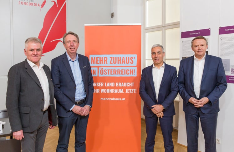 Vor diesem Hintergrund haben sich 18 führende Unternehmen und Institutionen der Bauwirtschaft und der Baustoffindustrie zusammengetan und die Initiative "Mehr Zuhaus' in Österreich!" gegründet und einen Forderungskatalog ausgearbeitet. Sie fordern von der Politik in Bund und Ländern ein sofortiges Gegensteuern. Am Mittwoch wurde dieser Katalog zur Förderung des Wohnbaus in Österreich von Robert Jägersberger, Bundesinnung Bau, Torsten Kreft, Hagebau Österreich, Georg Bursik, Baumit Österreich und Johann Marchner, Wienerberger Österreich, vorgestellt.