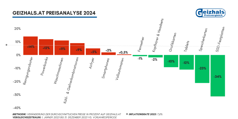 Preisentwicklung der Produktkategorien AT © Geizhals