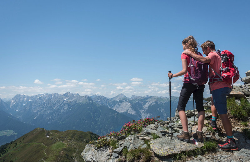 Später im Frühling geht’s noch weiter nach oben. Eine Etappe über dem Silberpfad, an der Zweitausendermarke zwischen Loassattel und Kellerjochhütte, verläuft der Inntaler Höhenweg durch die Tuxer Voralpen. Die Tiroler bezeichnen die sanften Höhen mit ihren Wäldern, Almböden und saftig grünen Wiesen als "Grasberge". Ab dem Frühsommer zählt auch der der etwa 730 Quadratkilometer große Naturpark Karwendel mit seinen Zweitausendern, Urwäldern, Wildflüssen, 100 Almen und ungezählten Kraftplätzen zu den beliebtesten Wanderrevieren Tirols.