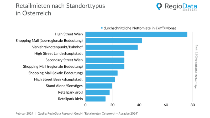 Retailmieten nach Standorttypus in Österreich © RegioData Research GmbH
