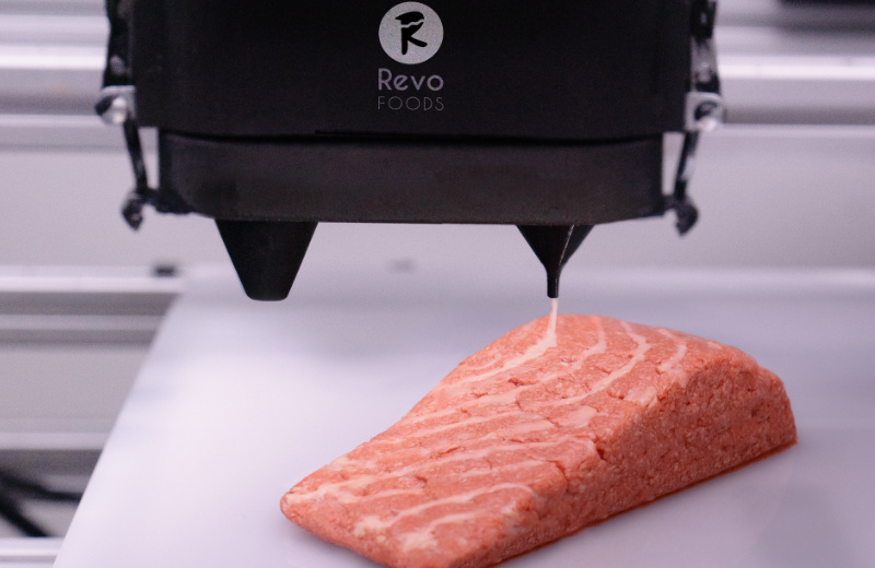 Seine Forschungserkentnisse über Additive Verfahren im Lebensmittelbereich führten schließlich zur Gründung von Revo Foods 2021. Das Unternehmen zählt mittlerweile 35 Mitarbeiter:innen und ist in Supermärkten in mehreren europäischen Ländern erhältlich.