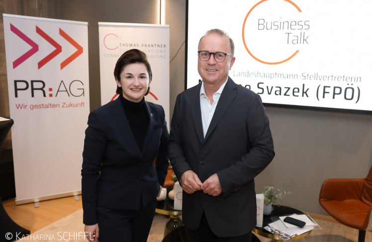 Rund 80 Besucher:innen aus Wirtschaft, Politik, Kultur, Medien und Werbung kamen zum Business Talk mit Landeshauptmann-Stellvertreterin Marlene Svazek. Mit dabei waren u.a. Elmar Aichbichler, FPÖ Kärnten, Thomas Arnoldner, A 1, Barbara Battisti ORF, Gernot Bauer, profil, Walter Becvar, Odgers Berndston, Wolfgang Beigl, Börse Express, Eduard Berger, Wiener Privatbank, Thomas Bokesz, Mediabrands Austria, Philipp Breitenecker, LG Österreich, Johann Breiteneder, Breiteneder Immobilien, Oliver Brosch, Praevenire Gesundheitsforum, Johannes Bruckenberger, ORF-Chefredakteur, Lukas Brucker, FPÖ Wien, Alexandra Cichra, Marketingexpertin, Althea Diamante, exxpress, Anna Dobler, Style up your life, Ronald Düller, PKE Holding, Christian Ebner, CE Holding, Christian Eder, ORF, Markus Eder, Casinos Austria, Edeltraud Fichtenbauer, Donauversicherung, Wolfgang Fischer, DDSG, Eva Födermayr, Raiffeisen OÖ-Privatbank, Peter Franzmayr, Stadt Wels, Klaus-Peter Fröhlich, ORF, Sabrina Fröhlich, oe24, Hubert Fuchs, Abg. z. NR, FPÖ und Steuerberater, Axel F. Ganster, Geschäftsführer ,Alexandra Geyer, Falkensteiner, Gerald Grünberger; VÖZ, Niki Haas, Rechtsanwalt, Martin Hagleitner, Austria Email, Florian und Daniela Halder, Stargate Group, Walter Hämmerle, Kleine Zeitung, Alexander Hartig, ILAG, Veronika Haslinger, Managerin, Salina Heiß, Porsche Media & Creative, Hartwig Hufnagl, ASFINAG, Michael Jungwirth, Kleine Zeitung, Dom Kamper, Büro LH-Stv. Svazek, Achim Kaspar, Verbund, Christoph Kerres, Rechtsanwalt, Georg Knill, Industriellenvereinigung, Harald Knoll, Stargate Group, Andreas Koller, Salzburger Nachrichten, Peter Koren, Industriellenvereinigung, Maximilian Krauss, FPÖ Wien, Thomas Krenn, ÖBB, Dagmar Lang, Unternehmerin, Stefan Lechner, Kurier, Andreas Lenzinger, UNIQA, Heimo Lepuschitz, TV-Politikexperte, Manuela Lindlbauer, Unternehmerin und Arbeitsmarktexpertin, Ralf-Wolfgang Lothert, JTI Austria, Kurt Mann, Unternehmer - Der Mann, Nathalie Martens, oe24, Andreas Martin, Porsche Media & Creative, Thomas Menzel, Unternehmer- Druckerei Süddruck, Corinna Milborn, Puls 24, Patrick Minar, Casinos Austria, Petra Mödlhammer-Prantner, ASFINAG, Sebastian Mörth, Medtronic und Alpine Think Hub, Christina Nageler, IGEPHA, Barbara Nepp, ORF-Publikumsrätin, Dominik Nepp, FPÖ-Stadtrat, Alexandra Nussbaumer, KSW, Gunther Pahl, Pahl Communications, Wolfgang Peschorn, Finanzprokuratur und Bundesminister a.D., Harald Pfannhauser, ORF, Michael Pichler, Kronen Zeitung, Christoph Pöchinger, Policon, Susanne Puller-Knittelfelder, APA, Andreas Rabl, Bürgermeister Wels, Rebekka Salzer, ORF, Michael Ruhdorfer, Manager, Harald Stefan, Abg. z.NR, FPÖ und Notar, Karin Strobl, Energie AG, Christina Traar, Kleine Zeitung, Markus Tschank, Rechtsanwalt, Ines Unfried, Janssen-Cilag Pharma, Viktor Wagner, REIWAG, Gregor Wassermann, Moderator, Michael Weihs, Gemeinderat der Unabhängigen Bürgerliste Hinterbrühl, Peter Westenthaler, ORF-Stiftungsrat, Matthias Winkler, Hotel Sacher, Gerlinde Zehetner, PV) und Kathrin Zierhut-Kunz, ORF III.
