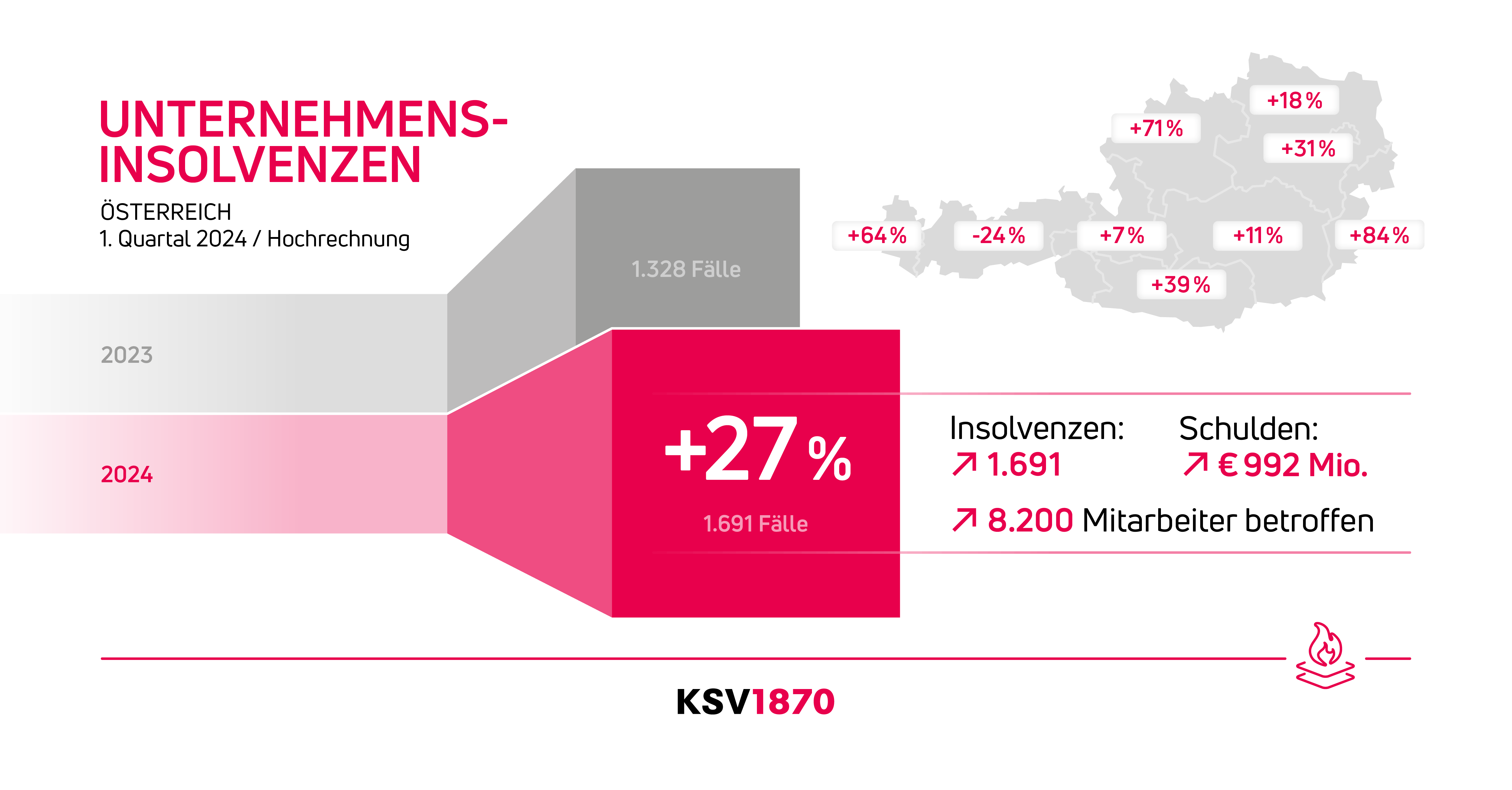 Wenn man in den vergangenen Wochen die Nachrichtenseite seiner Wahl besucht hat, kam man an den zahlreichen Meldungen rund um die Insolvenzen der Signa-Gruppe (worüber es mittlerweile sogar schon ein Theaterstück gibt (LEADERSNET berichtete)) und dessen einst schillernden Gründer René Benko kaum vorbei. Im Windschatten dieser mega Pleiten braut sich aber abseits der großen Wahrnehmung etwas zusammen: Im Vergleich zum Vorjahr stieg die Zahl der Insolvenzen unlängst um ganze 27,3 Prozent. Damit ist das erste Quartal 2024 das insolvenzreichste seit 2009.