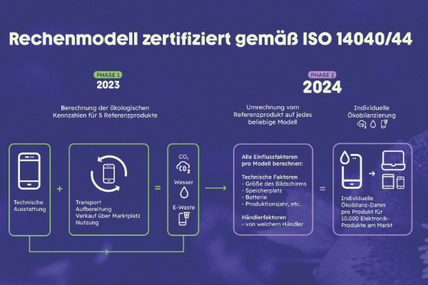 Das Rechenmodell ermöglicht es nun, diese ökologischen Kennzahlen für jedes beliebige elektronische Produkt transparent und verifiziert nach ISO 14040/44 zu berechnen. Refurbed nennt das System einen "intelligenten Taschenrechner": Eine komplexe Ermittlungsmethodik berechnet sämtliche Treibhausgas-Emissionen, die während des gesamten Produktlebenszyklus entstehen (d.h. von der Rohstoffgewinnung bis zur Entsorgung) ein und vergleicht sie mit jenen Emissionen, die bei demselben Produkt im zweiten Produktlebenszyklus (also durch Refurbishment und die anschließende Wiedernutzung) entstehen.