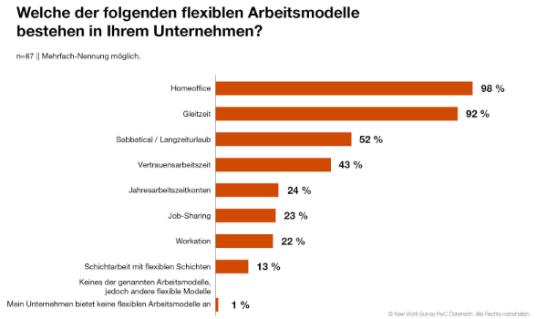 Welche der folgenden flexiblen Arbeitsmodelle bestehen in Ihrem Unternehmen? © PwC Österreich
