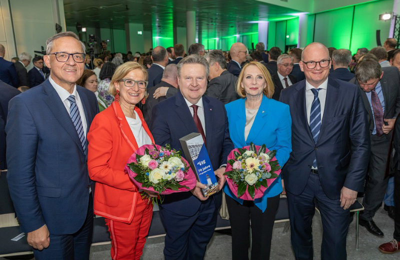 Die Wirtschaftskammer Niederösterreich gratulierte dem Flughafen Wien mit einer Auszeichnung zum Jubiläum, die von WKNÖ-Präsidenten Wolfgang Ecker an die Vorstände überreicht wurde. Für musikalische Unterhaltung sorgte die österreichische Künstlerin Caroline Kreutzberger mit ihrer Band.