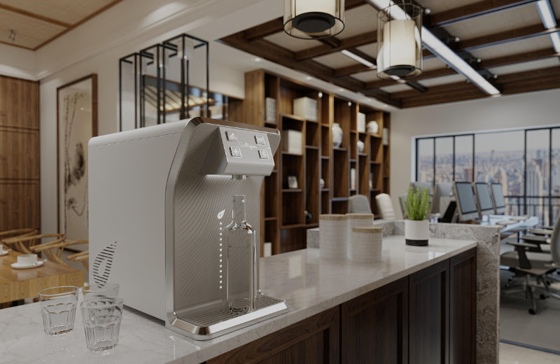 Die gekauften oder angemieteten Geräte werden direkt mit der Wasserleitung verbunden und regelmäßig gewartet. Auf Knopfdruck liefern sie gefiltertes, gekühltes, heißes, stilles oder prickelndes Wasser.