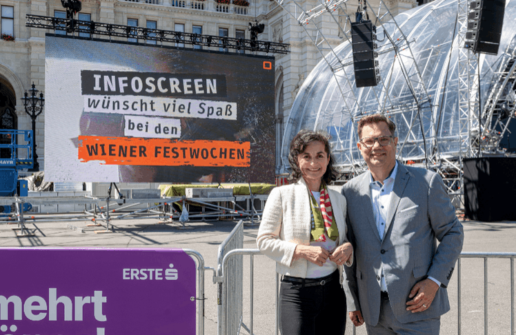 Am Rathausplatz wird am Freitag bei freiem Eintritt auch gleich die "Freie Republik Wien" ausgerufen. "Die Freie Republik Wien ist vor allem eine Republik der Künste, die fünfeinhalb Wochen vielstimmiges, leidenschaftliches Welttheater an über 30 Orten in Wien auf die Bühne bringt", erklärt Vakianis. Gleichzeitig betont sie die Rolle von Infoscreen in der Werbestrategie ihres Festivals: "Kein anderes Medium bringt unser Programm so direkt und reichweitenstark unter die Menschen."
