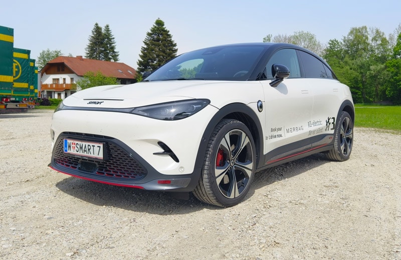 Bei unserem Testmodell, das von Merbag zur Verfügung gestellt wurde, handelte es sich um das Topmodell Brabus. Bei Autofans fangen bei diesem Namen gleich die Augen zum Glänzen an, denn schließlich handelt es sich bei Brabus um einen der bekanntesten und renommiertesten Veredlern von Modellen aus dem Hause Mercedes. Passend dazu, gibt es fast schon unverschämt viel Leistung. Denn während bereits das Einstiegsmodell mit einem 200 kW (272 PS) starken Heckmotor daherkommt, gibt es hier noch zusätzlich eine E-Maschine an der Vorderachse, die 114 kW (156 PS) leistet. Die Systemleistung des kompakten Allradstromers beläuft sich auf 315 kW (428 PS) und 543 Nm Drehmoment. So gerüstet, katapultiert sich der #3 Brabus - wie von der Tarantel gebissen - in 3,7 Sekunden aus dem Stand auf Tempo 100. Auf Wunsch wird innen dazu ein Benziner-ähnlicher Sound eingespielt, der jedoch Geschmackssache ist. Die Höchstgeschwindigkeit wird zugunsten einer höheren Reichweite bei 180 km/h abgeregelt. Apropos Reichweite: Smart gibt diese mit bis zu 415 km (WLTP) an. Wer die vorhandene Kraft häufig abruft, was angesichts des Spaßfaktors durchaus vorkommen kann, wird die 66 kWh (62 kWh netto) Batterie deutlich früher wieder aufladen müssen. Fahrwerk, Lenkung und Bremsen sind ebenfalls sportlich ausgelegt, bieten aber dennoch ausreichend Restkomfort. Zudem gibt es mehrere Fahrmodi, die den Charakter des Fahrzeugs merklich verändern. Das Kurvenräubern macht im Sport- oder Brabus-Modus richtig Laune, auch wenn sich das hohe Gewicht nicht komplett verleugnen lässt. Doch der Crossover kann durchaus sparsam. Wir haben das im Rahmen einer "Schleichfahrt" von Wien nach Oberösterreich ausprobiert. Mit 110 km/h auf der Autobahn und ohne Zwischensprints auf der Landstraße erzielten wir eine tatsächliche Reichweite von 395 km. Bei normaler Fahrweise und einer Außentemperatur zwischen zehn und 15 Grad sind wir auf rund 315 km gekommen, was angesichts der geboten Fahrleistungen ein sehr ordentlicher Wert ist. Die maximale Ladegeschwindigkeit (DC) von 150 kW kann sich im direkten Konkurrenzumfeld ebenfalls sehen lassen. Hier macht sich Geelys E-Kompetenz positiv bemerkbar. Gleiches gilt für den verbauten 22 kW AC-Lader sowie die Möglichkeit für echtes "One-Pedal"-Fahren. Hat man Letzteres einmal im Blut, muss man das Bremspedal nur noch in ganz seltenen Fällen benutzen.