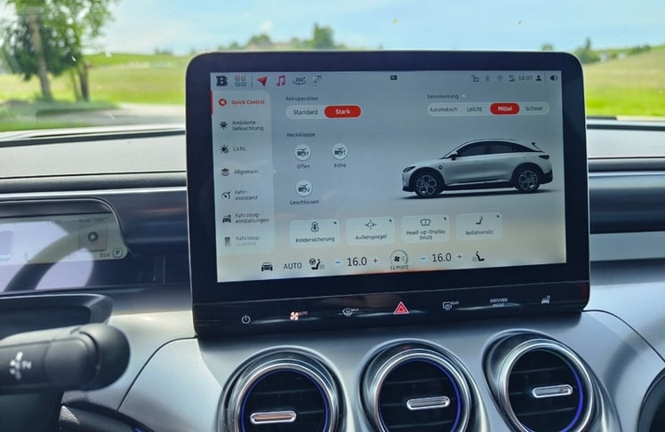 Wie alle modernen Autos verfügt auch der #3 Brabus über eine ganze Reihe an Assistenzsystemen. Hier macht sich die chinesische Herkunft ebenfalls bemerkbar, denn einige von ihnen reagieren etwas übersensibel. Vor allem die Müdigkeitskontrolle ermahnt äußerst übereifrig. Der Intelligent Speed Assistance (ISA) meldet sich beim Einlegen einer Fahrstufe zum Dienst und soll vor Geschwindigkeitsüberschreitungen warnen. Leider übernahm das System im Test mehrmals LKW-spezifische Geschwindigkeitsbegrenzungen und schlug deshalb fälschlicherweise Alarm. ISA lässt sich aber auch deaktivieren (muss man bei jedem Neustart machen). Der Abstandsregeltempomat und der Spurführungs-Assistent haben hingegen souverän gearbeitet und sind vor allem auf der Autobahn eine echte Entlastung.