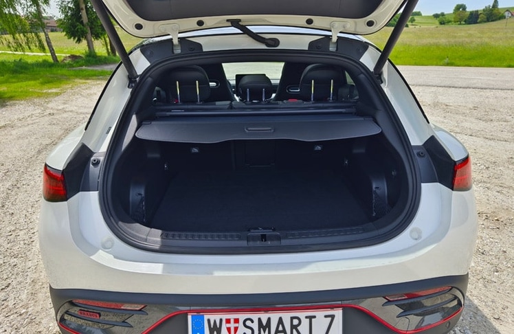 Nach dem Erstling #1, der in etwa so lang wie ein VW Golf ist, wurde die Modellpalette jetzt um den #3 erweitert. Der sportlich gezeichnete Crossover ist noch einmal um 13 cm länger und reiht sich mit seinen 4,40 Meter in das Segment der gestandenen Kompakt-SUV(-Coupés) ein. Die dynamische Optik wird durch die geringere Höhe (-8 cm) und etwas mehr Breite (+ 2 cm) im Vergleich zum kleinen Bruder noch einmal unterstrichen. Trotz der flacheren Karosserie ist das Platzangebot vorne wie hinten absolut ausreichend. Hier kommt dem Smart #3 die reine Elektroplattform mit im Boden untergebrachten Batterien und ohne störendem Mitteltunnel sowie das große Panoramadach, das das Raumgefühl noch einmal verbessert, zugute. Im Fond hätten wir uns jedoch etwas mehr Variabilität wie eine verschiebbare Rückbank und eine etwas längere Schenkelauflage gewünscht. Dafür sind die Sportsitze vorne über jeden Zweifel erhaben. Sie bieten eine perfekte Mischung aus Seitenhalt und Langstreckenkomfort. Das Kofferraumvolumen legt im Vergleich zum #1 um 57 Liter zu. Vorne gibt es einen praktischen Frunk, in dem man beispielsweise das Ladekabel verstauen kann und so stets griffbereit hat, auch wenn der Kofferraum vollgeräumt ist.