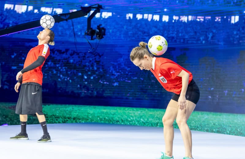 Passend zur bald beginnenden Fußball-Europameisterschaft in Deutschland gestaltete sich der Show-Act der Jahrestagung: Die beiden Fußball-Freestyler René Mathussek und Kitti Szász demonstrierten ihr Können am runden Leder. Ihre beeindruckenden Tricks sorgten bei den rund 800 Gästen für Begeisterung und bei vielen auch für Vorfreude auf die Euro 2024. Raiffeisen ist als Sponsor der österreichischen Nationalmannschaft mit an Bord.