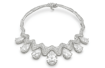 Die Halskette mit sieben Diamanttropfen, die ein Gesamtgewicht von 140 Karat ausmachen, ist eine Hommage an die Geschichte der Maison.