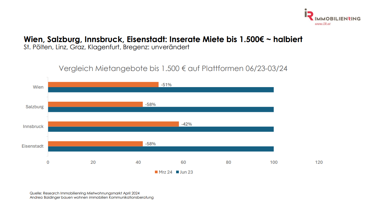 Wien, Salzburg, Innsbruck und Eisenstadt: Inserate Miete bis 1.500 Euro halbiert