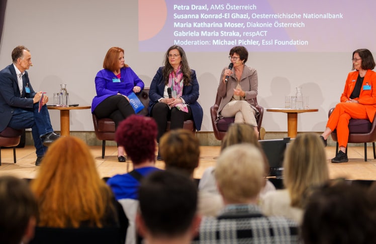 Im Mittelpunkt des Events standen verschiedene Panels mit hochkarätigen Diskutant:innen. Unter dem Thema "Chancengerechtigkeit und gesellschaftliche Teilhabe am Arbeitsmarkt – Ein Paradigmenwechsel" widmeten sich Gabriela Maria Straka, respACT, Petra Draxl, AMS Österreich, Susanna Konrad-El Ghazi, Oesterreichische Nationalbank und Maria Katharina Moser, Diakonie Österreich, der Frage, welche Jobchancen es gerade in wirtschaftlich schwer einschätzbaren Zeiten für Menschen mit Behinderungen gibt und welchen Einfluss neue Technologien und die Digitalisierung auf deren Arbeitswelt haben. Die Expert:innen beleuchteten dabei, welche Möglichkeiten es für Unternehmen am sich verändernden Arbeitsmarkt gibt. Die Moderation übernahm bei dieser Diskussionsrunde Michael Pichler, Direktor Essl Foundation.