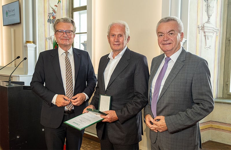 In der Aula der Alten Universität überreichte Landeshauptmann Christopher Drexler gemeinsam mit Landeshauptmann-Stellvertreter Anton Lang am 6. Juni an verdiente Persönlichkeiten Große Goldene Ehrenzeichen des Landes Steiermark sowie Ehrenzeichen des Landes Steiermark für Wissenschaft, Forschung und Kunst I Klasse. Neben den Ausgezeichneten und ihren Familienangehörigen, Freunden und Wegbegleitern begrüßte LH Drexler unter anderem Landesrätin Barbara Eibinger-Miedl, Klubobfrau Sandra Krautwaschl, den ehemaligen LH-Stv. Michael Schickhofer, Sektionschef Elmar Pichl (BM für Wisschenschaft, Bildung und Forschung) und TU-Rektor Horst Bischof beim Festakt.
